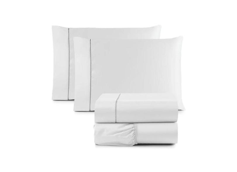 Jogo De Lençol Casal Toque 4 Peças Percal 600 Fios Branco - Casa Home