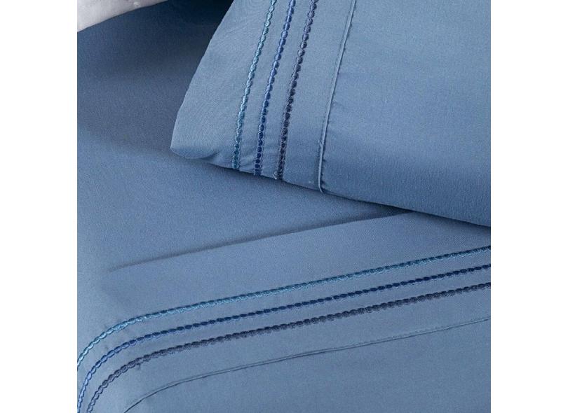 Jogo de Lençol Casal Yara bordado 4 peças Azul