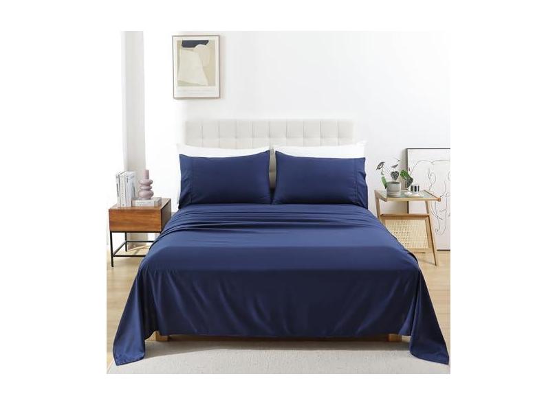 Jogo de lençol completo – 4 peças de lençóis macios e respiráveis para cama de casal, lençóis escovados de luxo com bolso extra profundo, lençóis de cama e fronhas refrescantes de hotel, lençóis de
