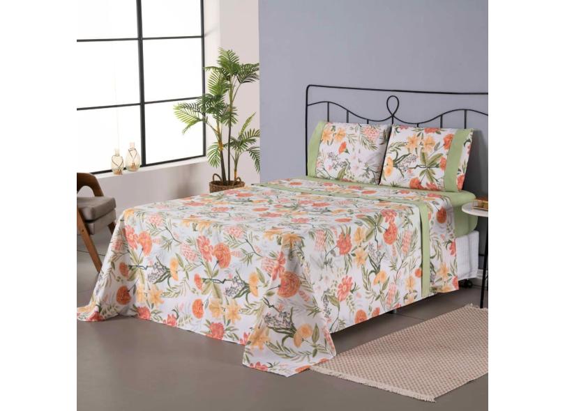 Jogo de Lençol Completo Encantare Roupa de Cama Casal King Size Percal 180 Fios Estampado Ponto Palito Algodão 4 Peças