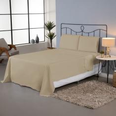Jogo de Lençol Completo Roupa de Cama Casal Padrão Percal 140 Fios Liso Ponto Palito Algodão 4 Peças