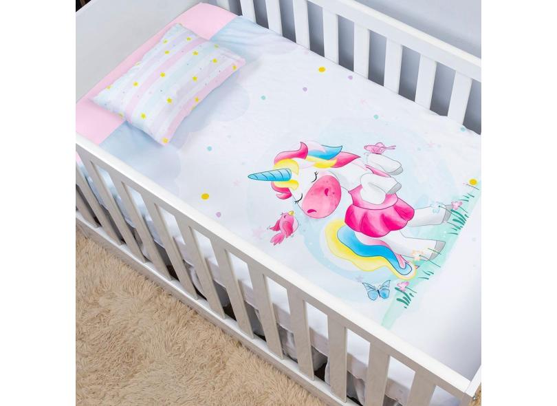 Jogo De Lençol De Berço 2 Peças Infantil Bebê Unicórnio