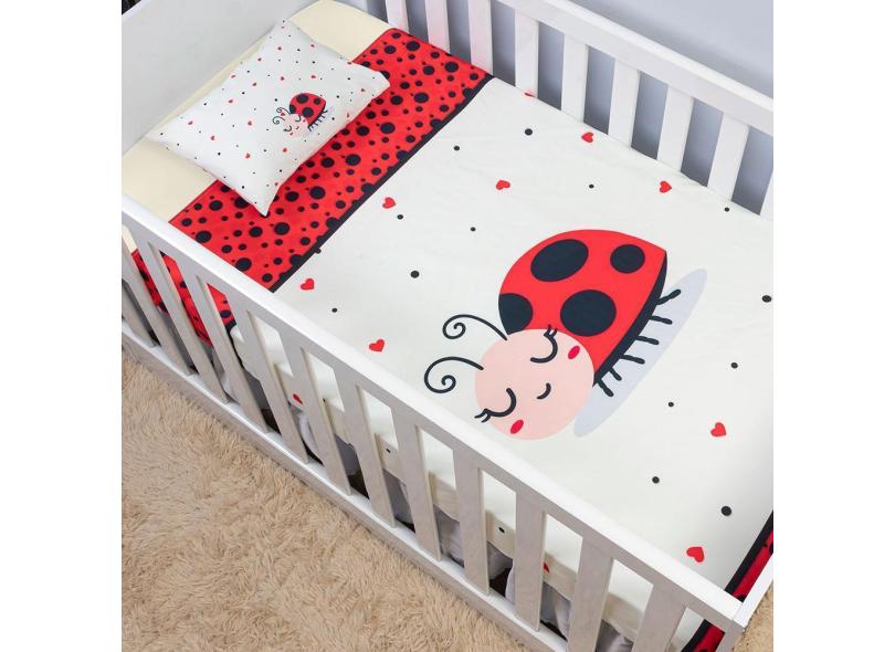 Jogo De Lençol De Berço 3 Peças Infantil Bebê Joaninha