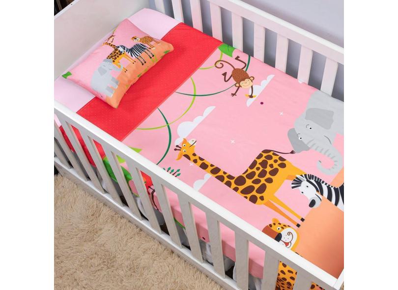 Jogo De Lençol De Berço 3 Peças Infantil Bebê Safari