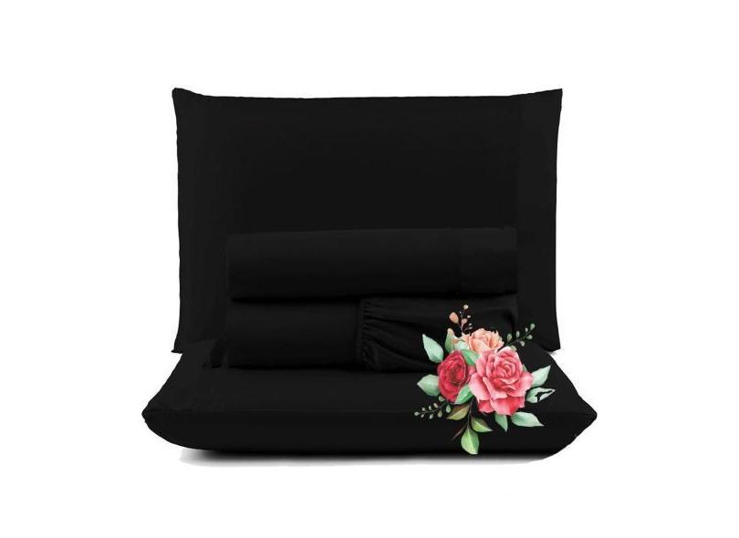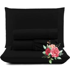 Jogo De Lençol Dia A Dia Queen 4 Peças Barato - Preto - Casa Show Enxo
