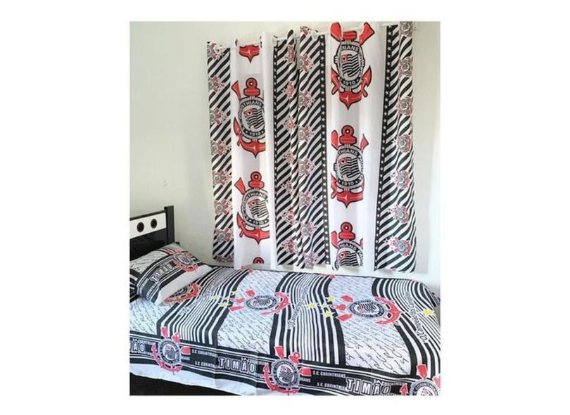 Jogo De Lençol Do Corinthians Solteiro 2peças Com Cortina