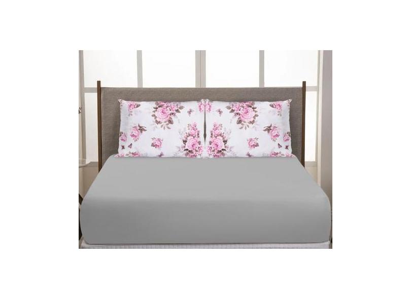 O menor preço encontrado no Brasil para Jogo De Lençol Elástico Casal Queen Box 3 Peças 200 Fios Rosas Cinza - atualmente é R$ 102,78.