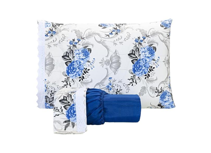O menor preço encontrado no Brasil para Jogo De Lençol Estampado Casal Padrão 03 Peças Flores Azul Escuro atualmente é R$ 72,90.