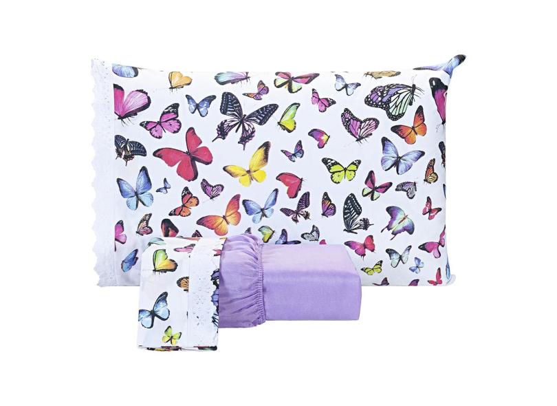 O menor preço encontrado no Brasil para Jogo De Lençol Estampado Casal Super King 03 Peças Borboletas Lilás atualmente é R$ 109,90.