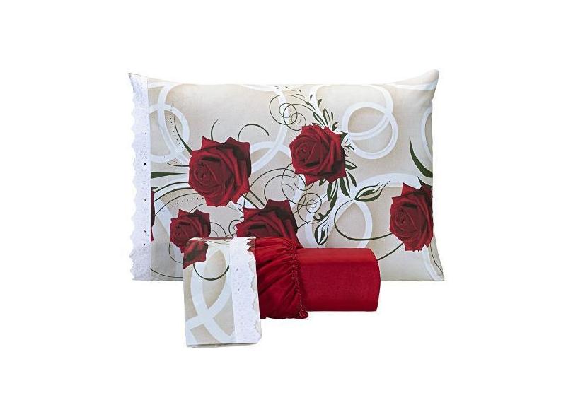 Jogo De Lençol Estampado Casal Super King 03 Peças Rosas Vermelho Micr