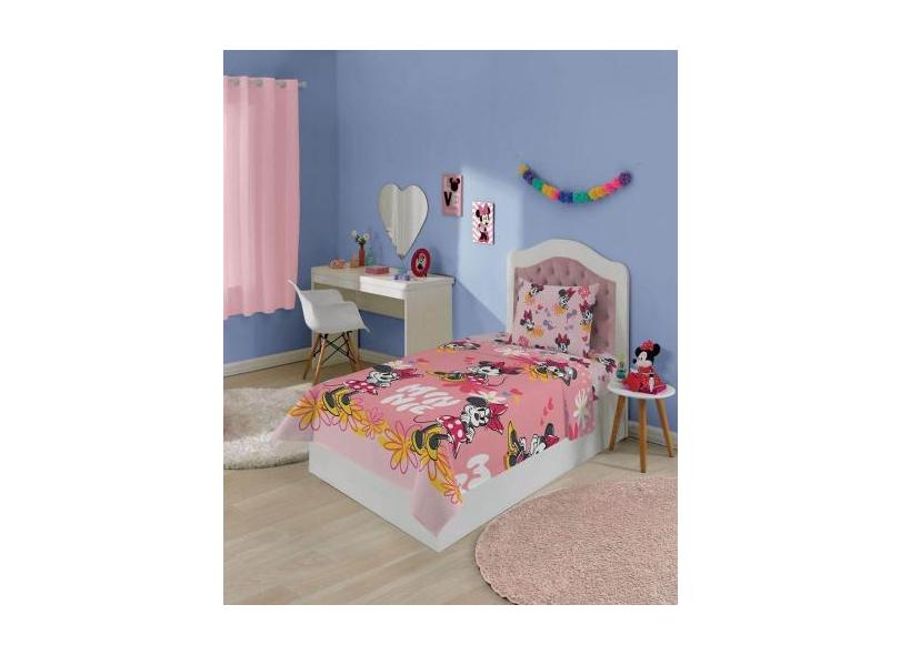 Jogo De Lençol Fronha Cama Solteiro Infantil Minnie Menina Rosa 2 Peça