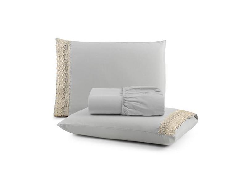 Jogo De Lençol Gippir Queen Percal 200 Fios 3 Peças - Cinza - Santos E