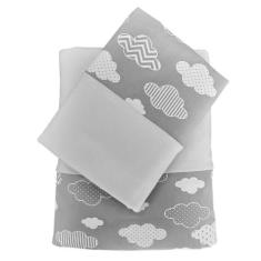 Jogo de Lençol Junior 78cm x 1,62m Nuvem Branco Arrumadinho Enxovais