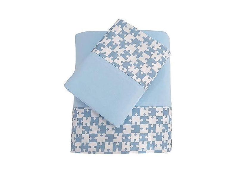 O menor preço encontrado no Brasil para Jogo de Lençol Junior 78cm x 1,62m Puzzle Azul Arrumadinho Enxovais atualmente é R$ 122,58.