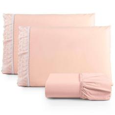 O menor preço encontrado no Brasil para Jogo de Lençol King 3 Peças Basic Percal 180 Fios Lese Bordado Inglês - Salmão atualmente é R$ 126,01.