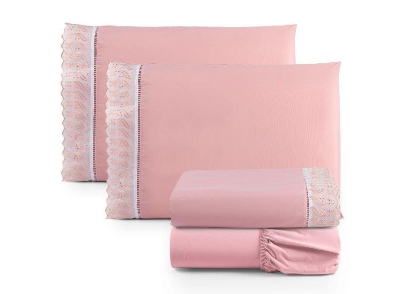 Jogo De Lençol King 4 Pçs Basic Percal 180 Fios Lese Bordado Inglês - Rosê
