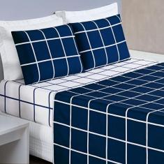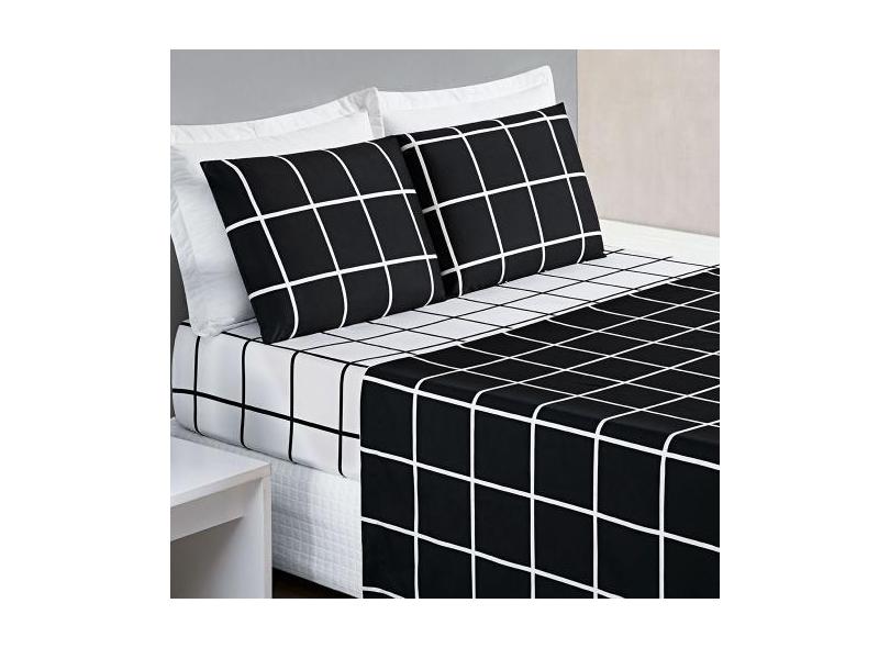 Jogo De Lençol King 4 Peças Percal 200 Fios Estampa Grid Austin - Lind