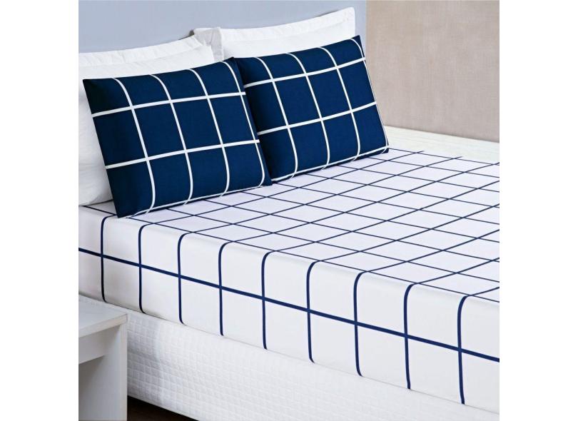 Jogo De Lençol King Austin Micropercal 200 Fios - 3 Peças Cor Xadrez Marinho