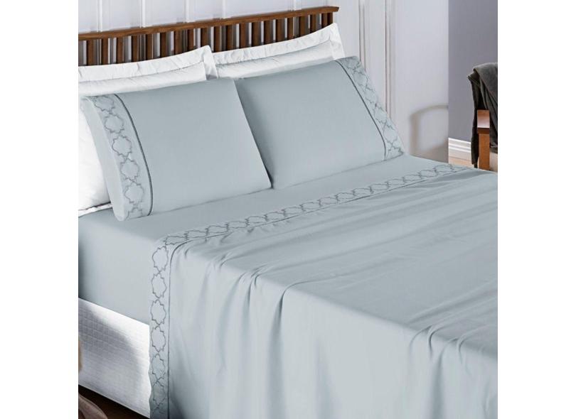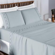 Jogo de Lençol King Infinity Bordado 300 Fios 4 Peças - Cinza
