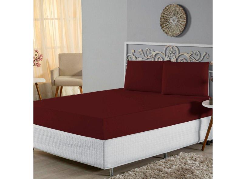 Jogo de Lençol King Malha 100% Algodão 3 Peças - Vinho