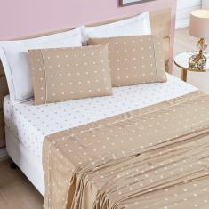 Jogo De Lençol King Petit Poa 200 Fios 4 Peças Cor Poa Caqui