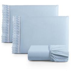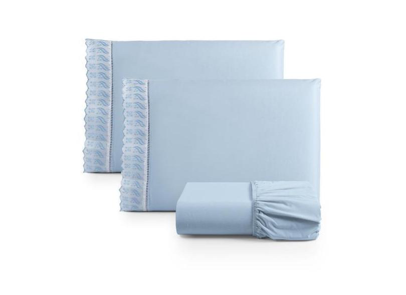 O menor preço encontrado no Brasil para Jogo De Lençol Lese Casal Percal 180 Fios 3 Peças - Azul - Santos E Lu atualmente é R$ 73,19.