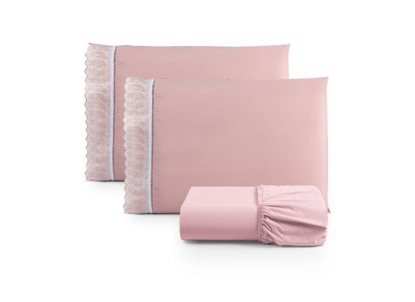 O menor preço encontrado no Brasil para Jogo De Lençol Lese Casal Percal 180 Fios 3 Peças - Rosê - Santos E Lu atualmente é R$ 73,19.