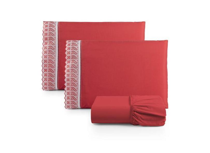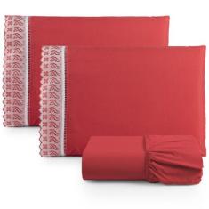 Jogo De Lençol Lese Casal Percal 180 Fios 3 Peças - Vermelho - Santos