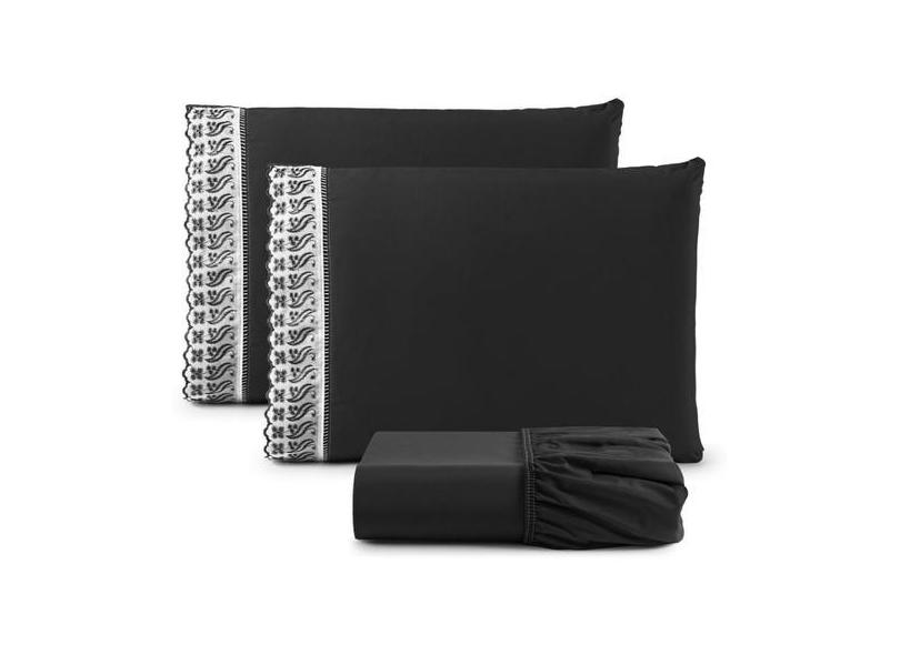 Jogo De Lençol Lese King Percal 180 Fios 3 Peças - Preto - Santos E Lu