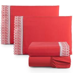 Jogo De Lençol Lese Percal 180 Fios Queen 4 Peças Barato - Vermelho