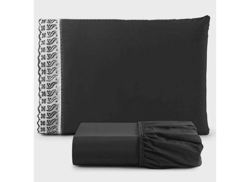 Jogo de Lençol Lese Percal 180 Fios Solteiro 2 Peças Barato - Preto