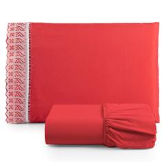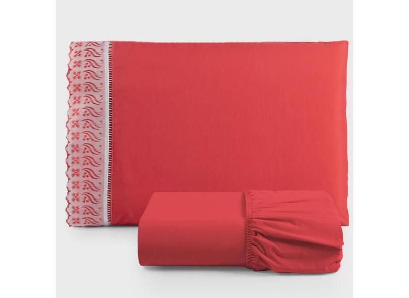 Jogo De Lençol Lese Percal 180 Fios Solteiro 2 Peças Barato - Vermelho