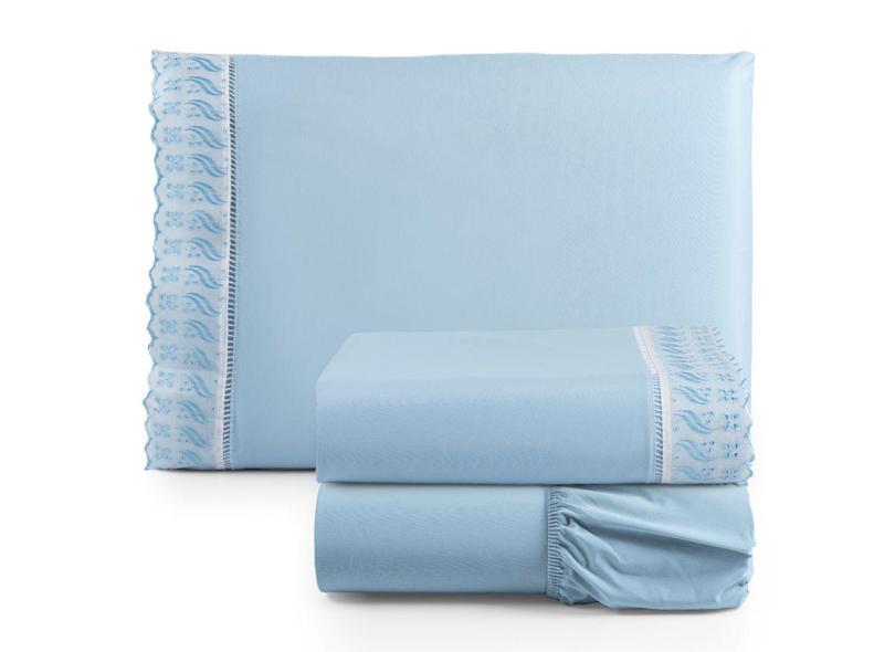 Jogo de Lençol Lese Percal 180 Fios Solteiro 3 Peças Barato - Azul
