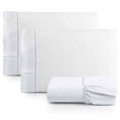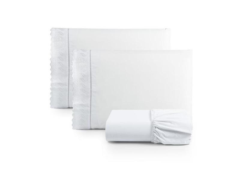 Jogo De Lençol Lese Queen Percal 180 Fios 3 Peças - Branco - Santos E