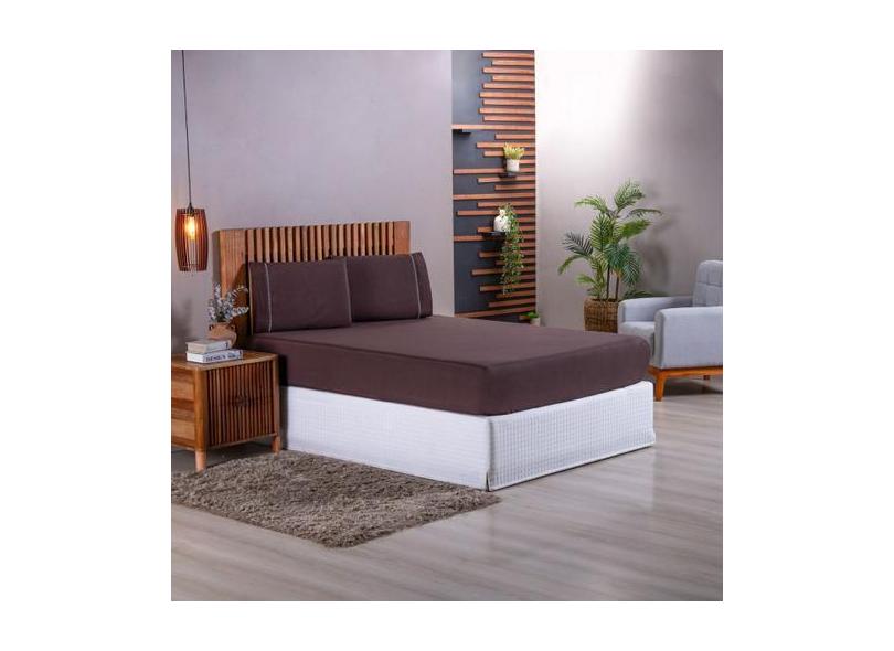 Jogo de Lençol Liso Solteiro 2 Peças 180 Fios 100% Algodão - Marrom