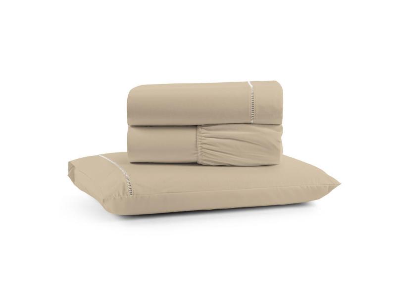 Jogo de Lençol Luiza Solteiro 3 Pçs Percal 100% Algodão 180 Fios Ponto Palito - Avelã