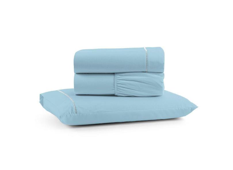 Jogo De Lençol Luiza Solteiro 3 Pçs Percal 100% Algodão 180 Fios Ponto Palito - Azul