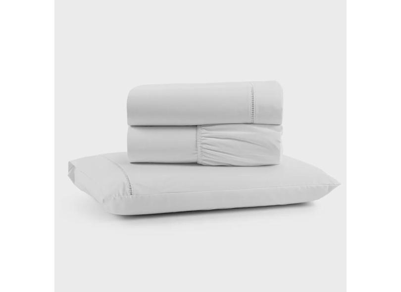 Jogo de Lençol Luiza Solteiro 3 Pçs Percal 100% Algodão 180 Fios Ponto Palito - Branco