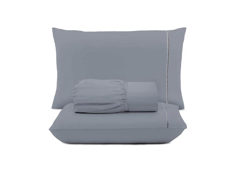 Jogo de Lençol Malha Queen 3 Peças 100% Algodão Cinza