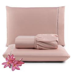 Jogo de Lençol Micropercal 400 Fios Padrão 3 Peças Barato - Salmão