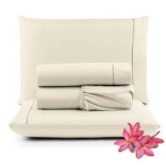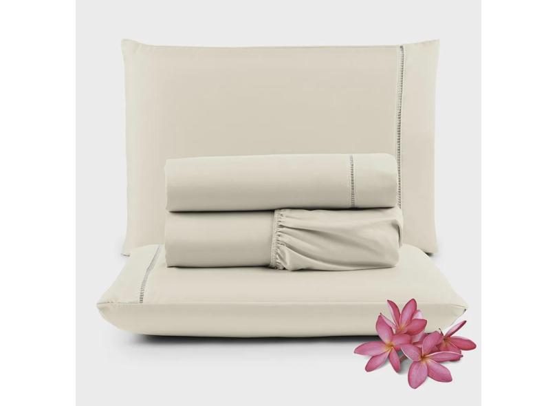 Jogo de Lençol Micropercal 400 Fios Queen 4 Peças Barato - Palha