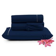 Jogo de Lençol Micropercal 400 Fios Solteiro 3 Peças Barato - Marinho