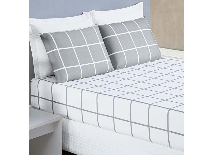 Jogo De Lençol Minimalista Casal Queen 3 Peças Percal 200 Fios Quadriculado - Cinza