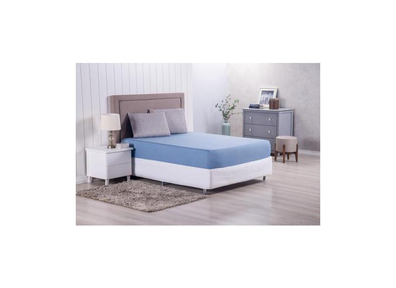 Jogo De Lençol Modern 3 Peças Queen Percal De Poliéster 300 Fios Azul