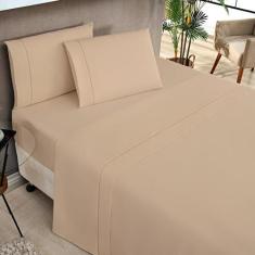 Jogo De Lençol Moscou Queen Ponto Palito 4 Peças Barato - Cáqui