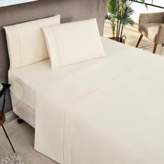 Jogo de Lençol Moscou Queen Ponto Palito 4 Peças Barato - Palha