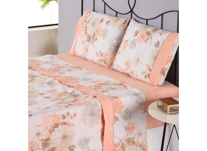 Jogo De Lençol Naturale Estampado Queen 4 Peças Ponto Palito Percal 180 Fios - Salmão Floral
