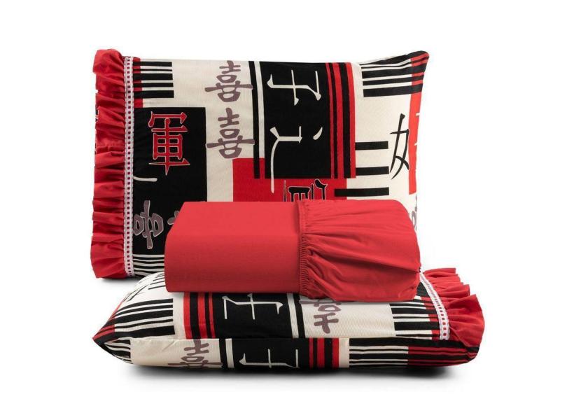 Jogo De Lençol Oriental Queen 3 Pçs Algodão 180 Fios Estampado - Vermelho