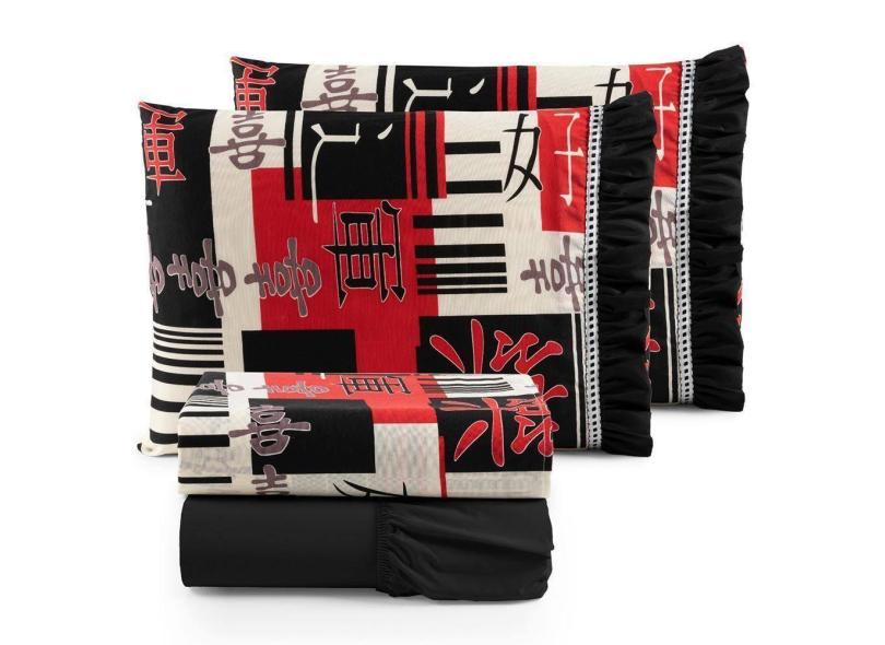 Jogo De Lençol Oriental Queen 4 Pçs Algodão 180 Fios Estampado - Preto