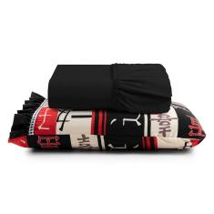 Jogo De Lençol Oriental Solteiro 2 Peças Algodão 180 Fios Estampado - Preto